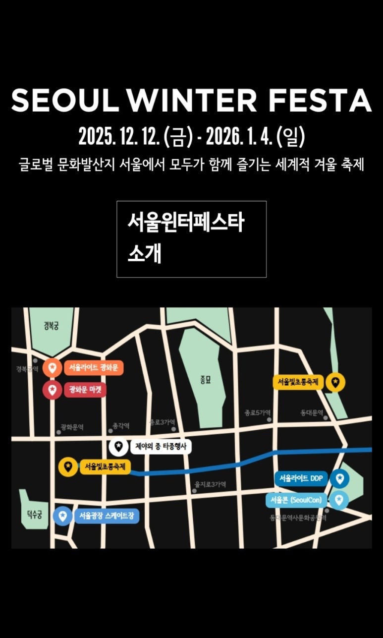 #서울윈터페스타 #2025서울윈터페스타 #판타시아서울 #서울라이트 #광화문마켓 #서울빛초롱축제 #서울광장스케이트장 #DDP #제야의종 #서울여행 #겨울축제 #크리스마스마켓 #서울데이트 #연말행사 #빛축제 #미디어파사드 #청계천 #광화문광장 #서울콘 #K컬처체험 #겨울여행 #서울가볼만한곳 #12월행사 #연말데이트 #새해맞이