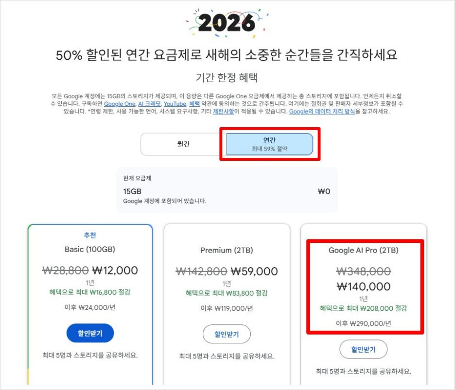 첫해는 할인 가격이지만, 2년 차부터는 정상가(29만원)로 결제되니 달력에 미리 체크해두세요.