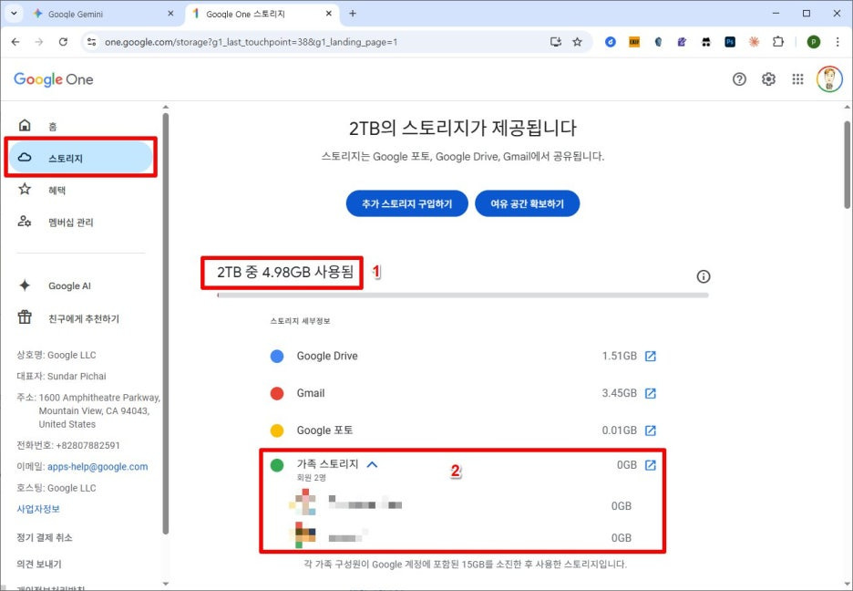 본인과 다른 가족들의 사용량은 [스토리지] 메뉴에서 확인할 수 있습니다.