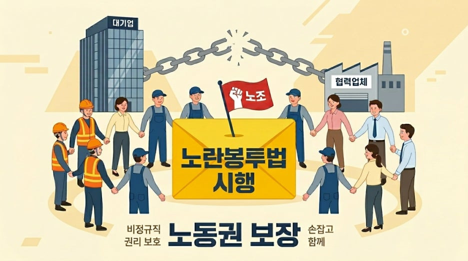 #노란봉투법 #노조법개정 #노동조합법 #하청노동자 #원청사용자 #노동쟁의 #손해배상제한 #2026노동법 #노동권보호 #이재명정부 #노사관계 #한국노동법