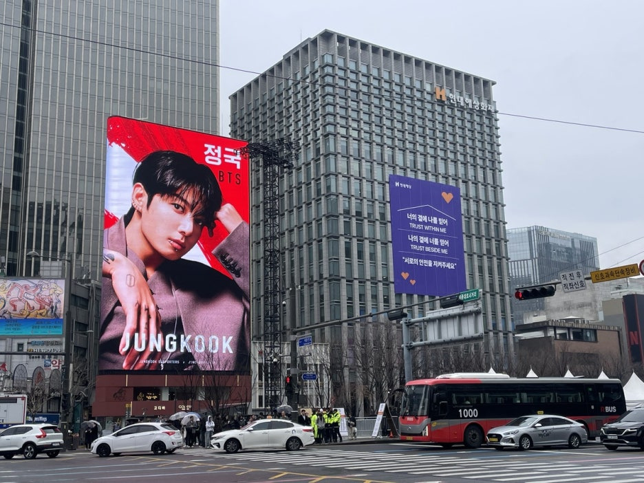 미국 LA에서 날아온 사람도 있었고, 대만 팬들은 광화문역 전광판에 뷔 응원 영상을 직접 띄워놨습니다!