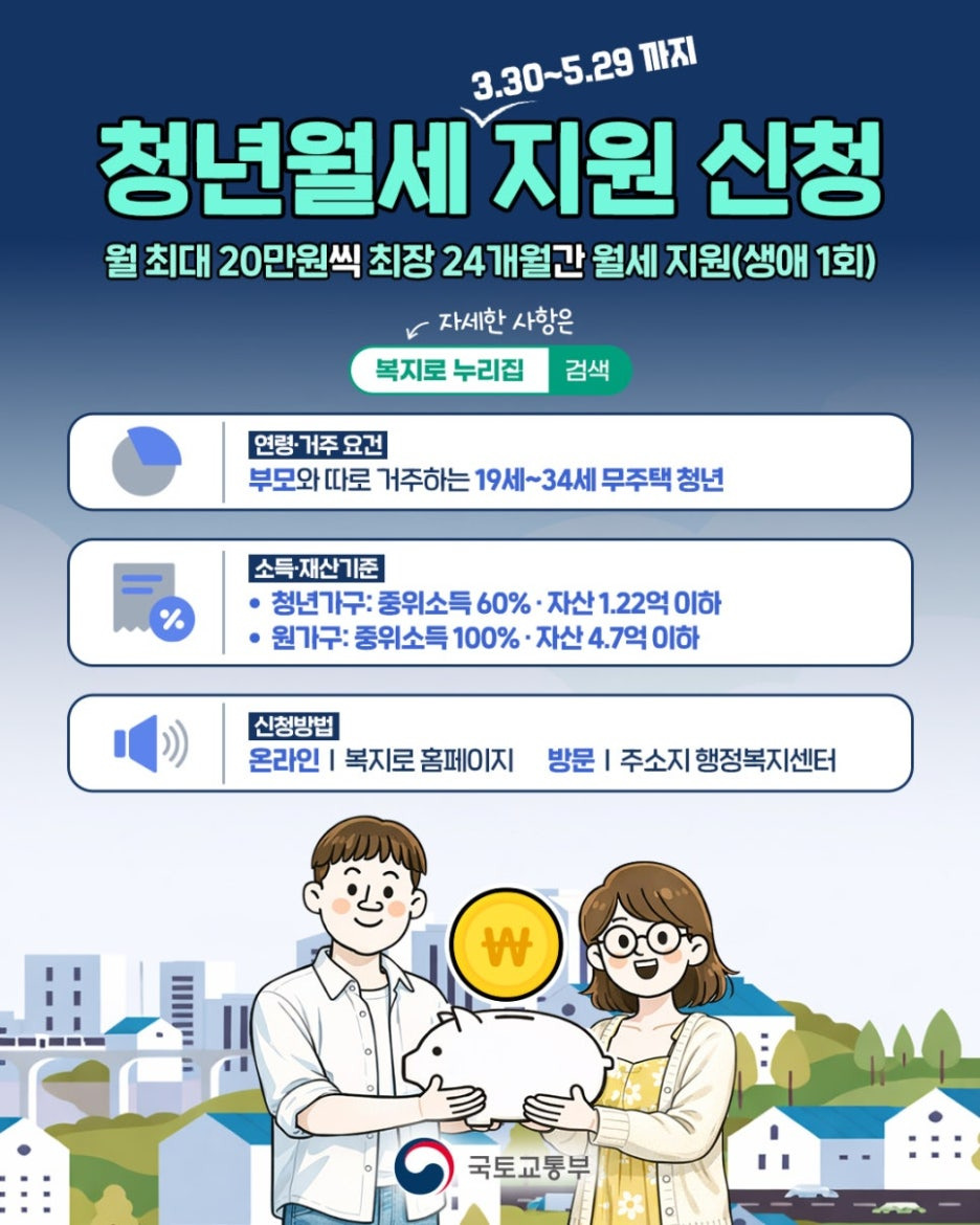 #청년월세지원 #청년월세한시특별지원 #2026청년지원 #자취생혜택 #청년주거지원 #월세지원 #복지로 #국토교통부 #청년정책 #자취꿀팁