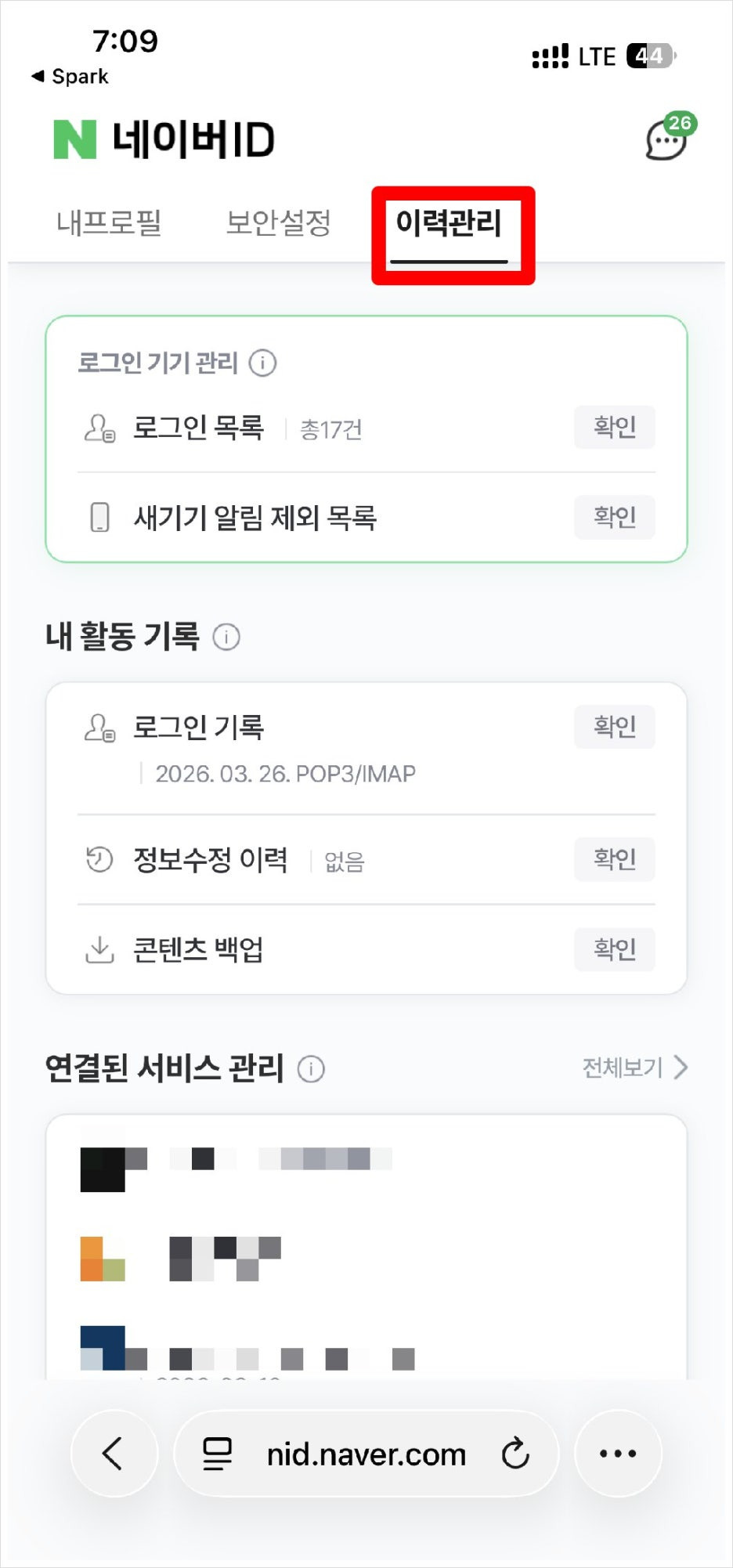 메일의 [확인하러 가기]를 클릭해보니 로그 아웃을 했는데도 아이디가 적혀 있습니다.