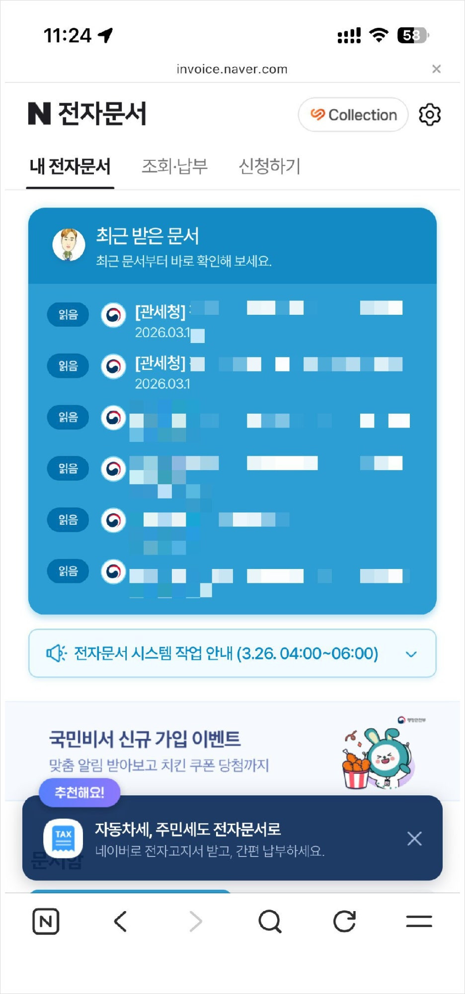 하는 생각으로 [네이버 앱 > 전자문서]로 들어갔습니다.