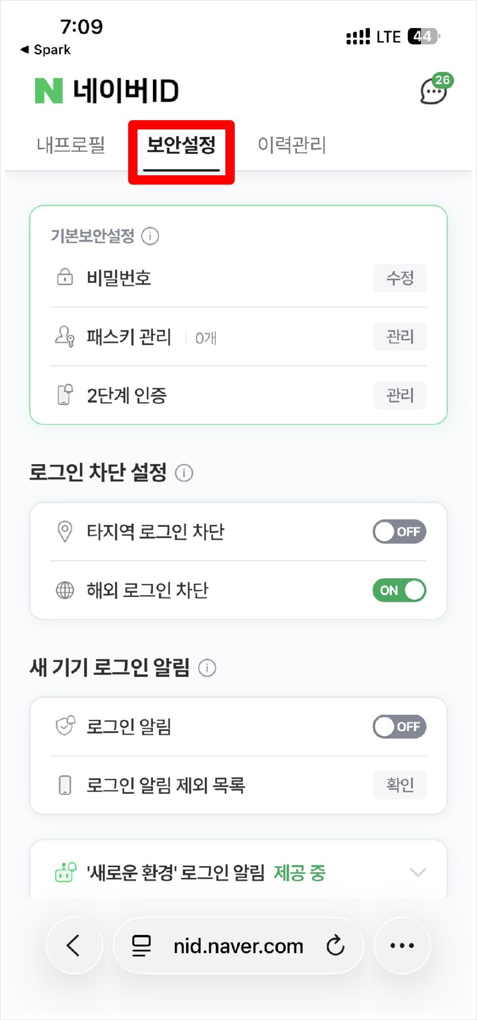 심지어 조금전에 로그인 하라고 나온 [보안설정] 탭을 눌러도 정상적으로 나오는 것 입니다.