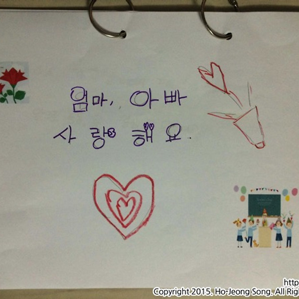 가정의 달이라고 학교에서 만들었는지… 준혁이가 그림 편지를 던지고 도망간다… 내용을 읽어보니… "자기 때문에 돈 많이 써서 미안하다, 나중에 돈 많이 벌어서 효도하겠다…" 노후에는 준혁이 덕분에 돈걱정없이 살것 같다… ㅎ